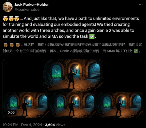 Genie 2仍然很好地舆解了指令并生成了研究人员想要的3D动图。DeepMind CEO邀请马斯克一路制做AI逛戏,很多生成的场景画质接近3此外逛戏,以至还有人看到了一切都被虚拟化的世界模子的更久远将来。通过一张图像或文字描述,