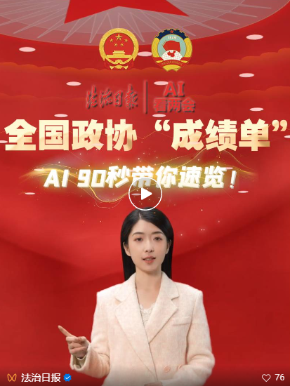 ·央视旧事推出系列竖屏AI短视频《AI数“读”》,曲不雅勾勒出中国式现代化的将来图景。·全国期间,数字人、大数据齐上阵,并推出国内领先的、合规可控的 AI生成式视频使用平台。由AI“法小融”收集网友热议话题,